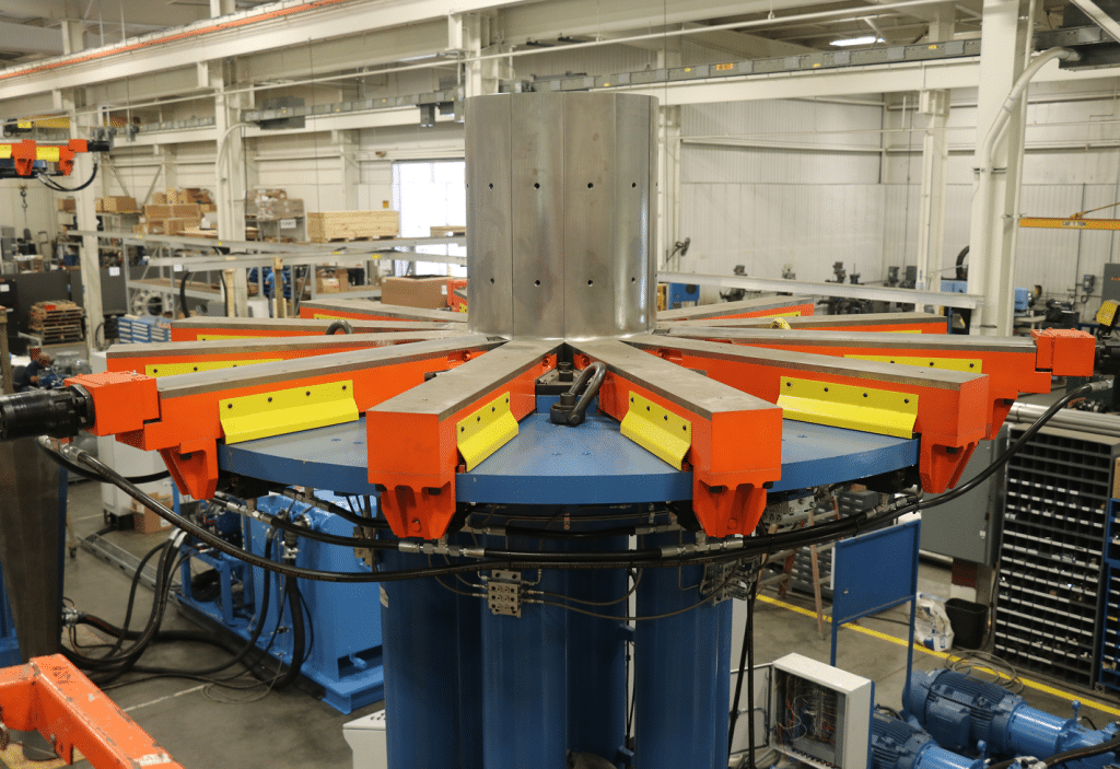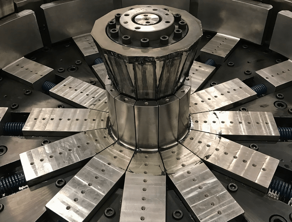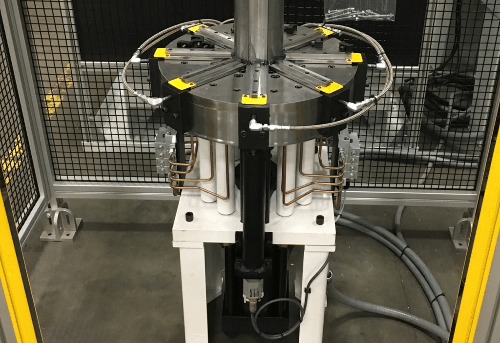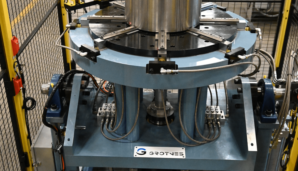 As the inventor of the expander, Grotnes machines are capable of sizing and forming a broad spectrum of hollow components — whether cold or hot — ranging from cylinders and cones to squares and various poly-sided shapes. Our expanders, available in both push or pull configurations, operating on the wedge principle. As the cone progresses, it pushes the dies outward, stretching the metal beyond its yield point to achieve the desired shape and