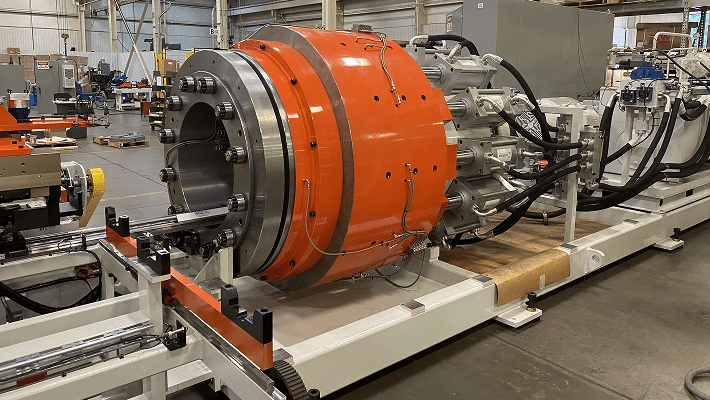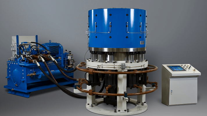 Grotnes shrinkers are expertly designed to ensure precise outside diameter accuracy for a variety of parts. Operating on the principle opposite to expanding, the shrinking process involves positioning the part within the shrinker with its outer diameter facing the tooling. As the dies are forced inward, they compress the metal beyond its yield point, achieving the desired shape and size.